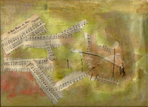I also used some brown inks and some sparkly inks and some more sheet music on another piece of paper. I’m not crazy about it, but I can certainly cover it with some more inks, or paints, or paper, or whatever I want.