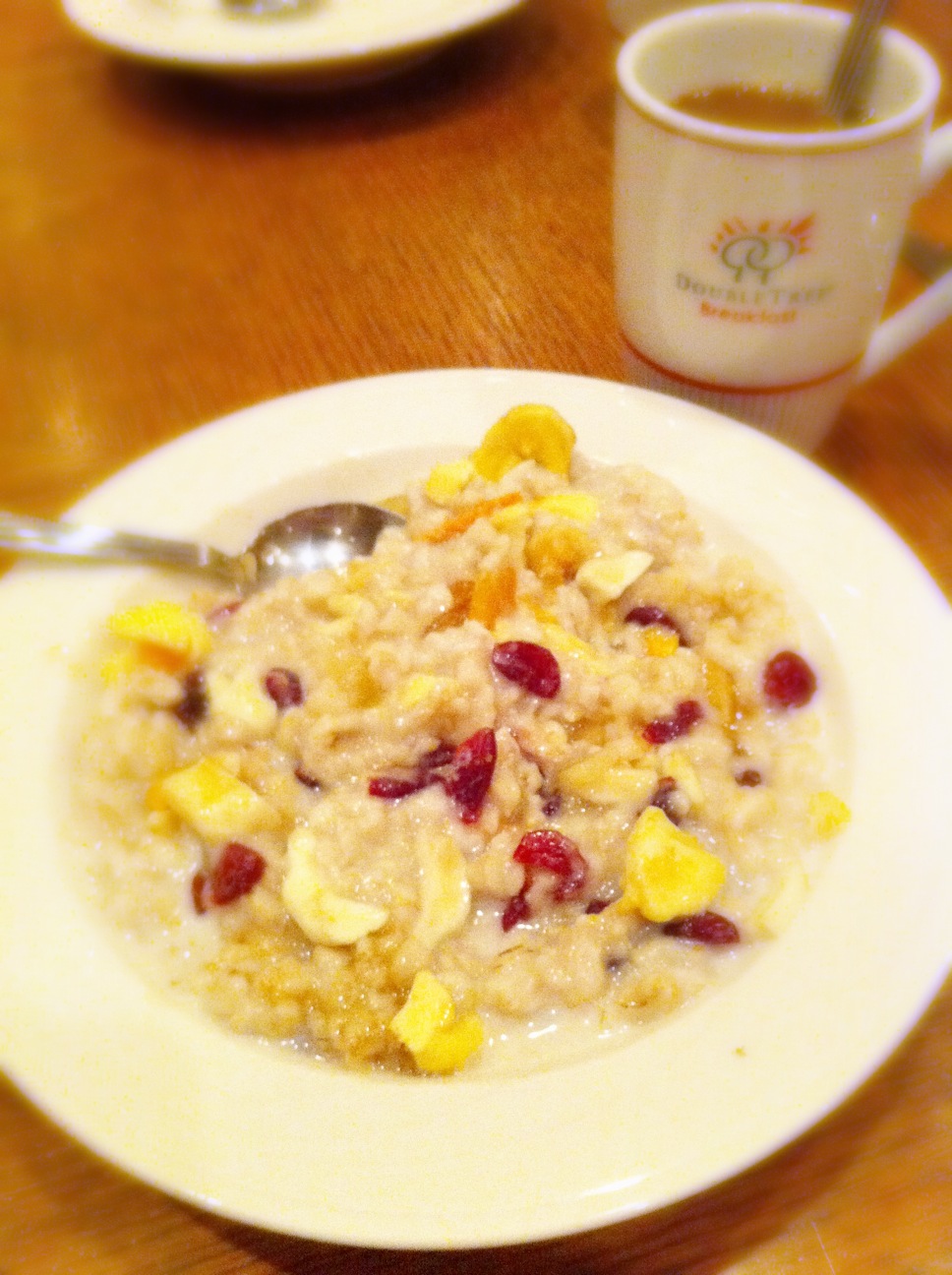 Imagine my joy when I discovered that continental breakfast includes hot steel cut oats and a large selection of dried fruits to top it off.