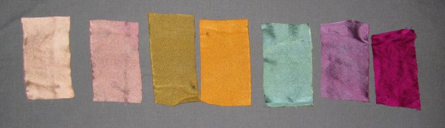 I’m always game for surprises. I can’t say that I dyed these swatches with absolute consideration to weights and measures, but I did do it and will have some idea of the outcome of the ombre dyeing process. My next task is to choose amongst these seven gorgeous colors.