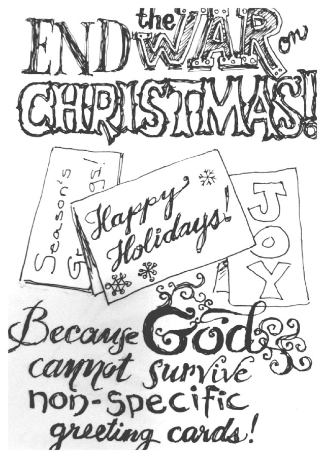 Every time I hear somebody complain about being wished “Happy Holidays” I wonder if they think God is so fragile that He will be destroyed by people using inclusive greetings.