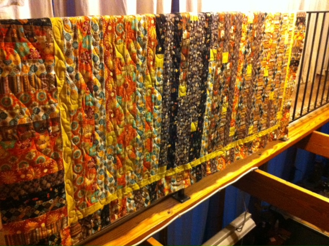 Oops. Wrong quilt. That one is finished. The next one is still on the frame, although this one still needs to be bound. It won’t take that long… it’s just another thing to get around to doing.