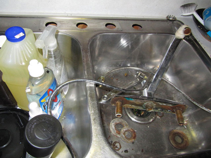 8:00 More hammering followed by some hallelujahs.  Install new faucet.