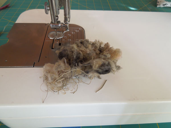 Juki had quite a collection of lint, along with a whole lot of thread that was wound tightly around – I don’t know the name, but I’ll call it a drive shaft. After all was cleaned, I ended up with this: