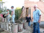 - What’s left of the crew at the end of the day from the second day of stuffing the walls. It’s like an old-fashioned barn raising. It takes a community to form the walls of a straw/clay home.