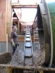 - Straw/clay mix being tumbled and sent up the conveyor into the house.