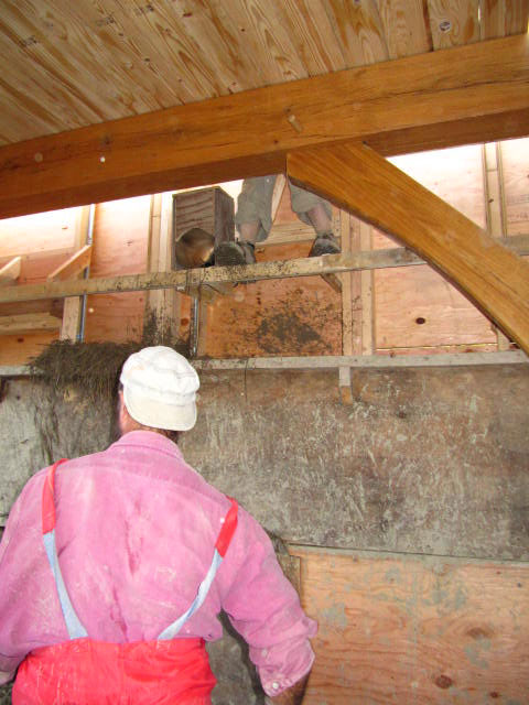 The mix being forked into the wall forms. You can see the you woman’s feet waiting to stomp the mix down into the wall forms.